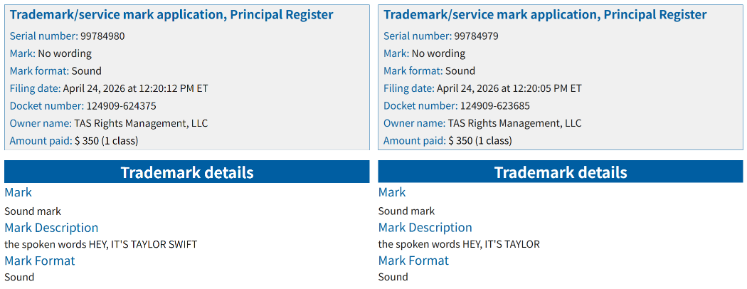 他强调,通过为泰勒·斯威夫特嗓音中的特定短语注册商标,斯威夫特及其团队现在不仅有权对完全相同的复制品提出异议,还能对那些“令人混淆地相似”的模仿行为发起挑战——这正是商标法的核心要义所在。