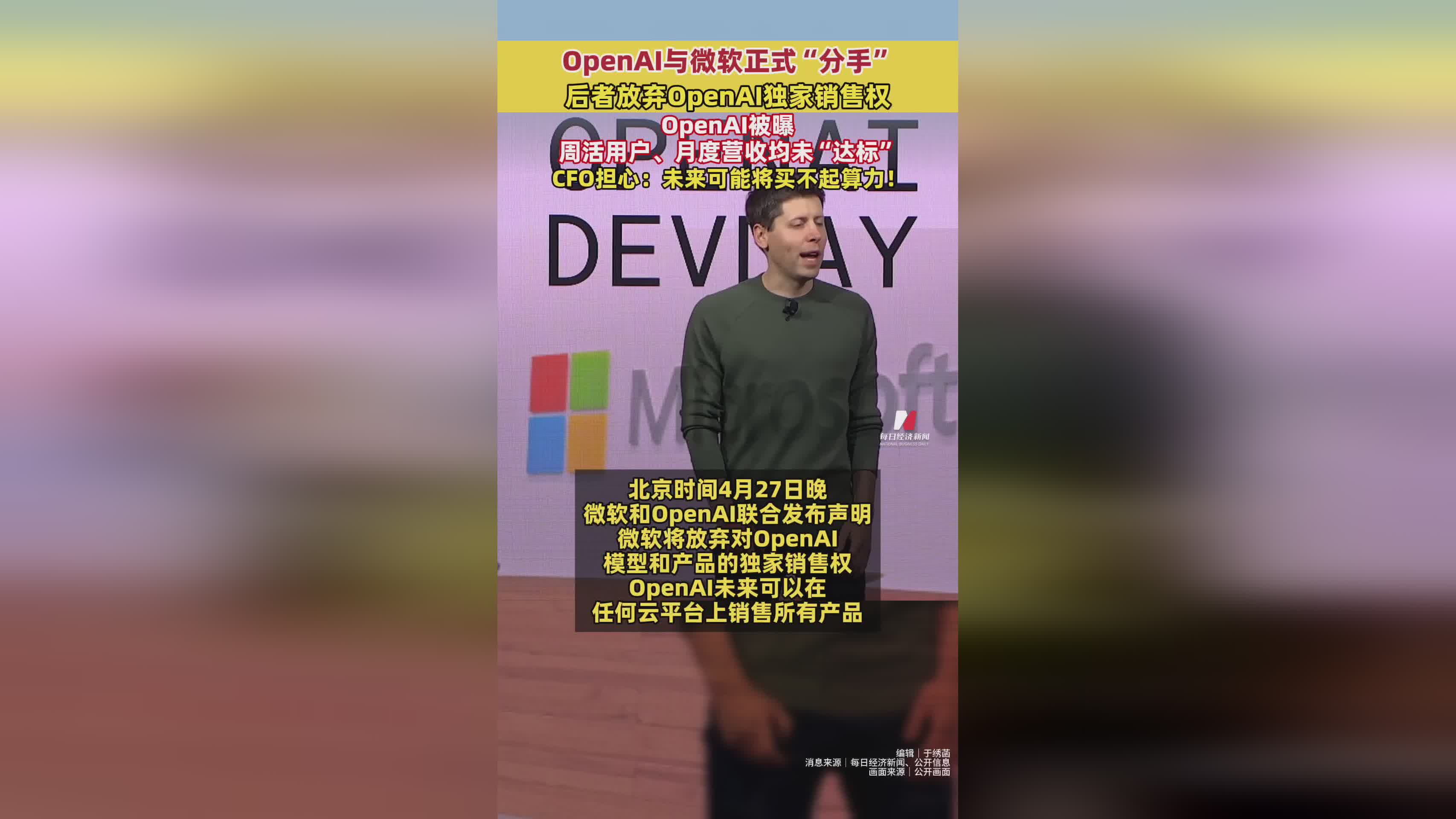 微软突然终止OpenAI独家合作!周活用户差2300万达标,CFO预警:2025年或因算力成本破产