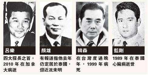 直到现在,有三位已经离世,而逃到泰国的颜雄至今没有音讯,可以猜想应该是还活着,之前吕乐还曾经讲到颜雄曾来台湾找他喝茶。颜雄是四位探长里面最低调也最隐秘的,至今一点消息都没有,甚至连他的生辰年月都没有,不过根据几位探长的大致年岁,他今年应该也八十多岁了.