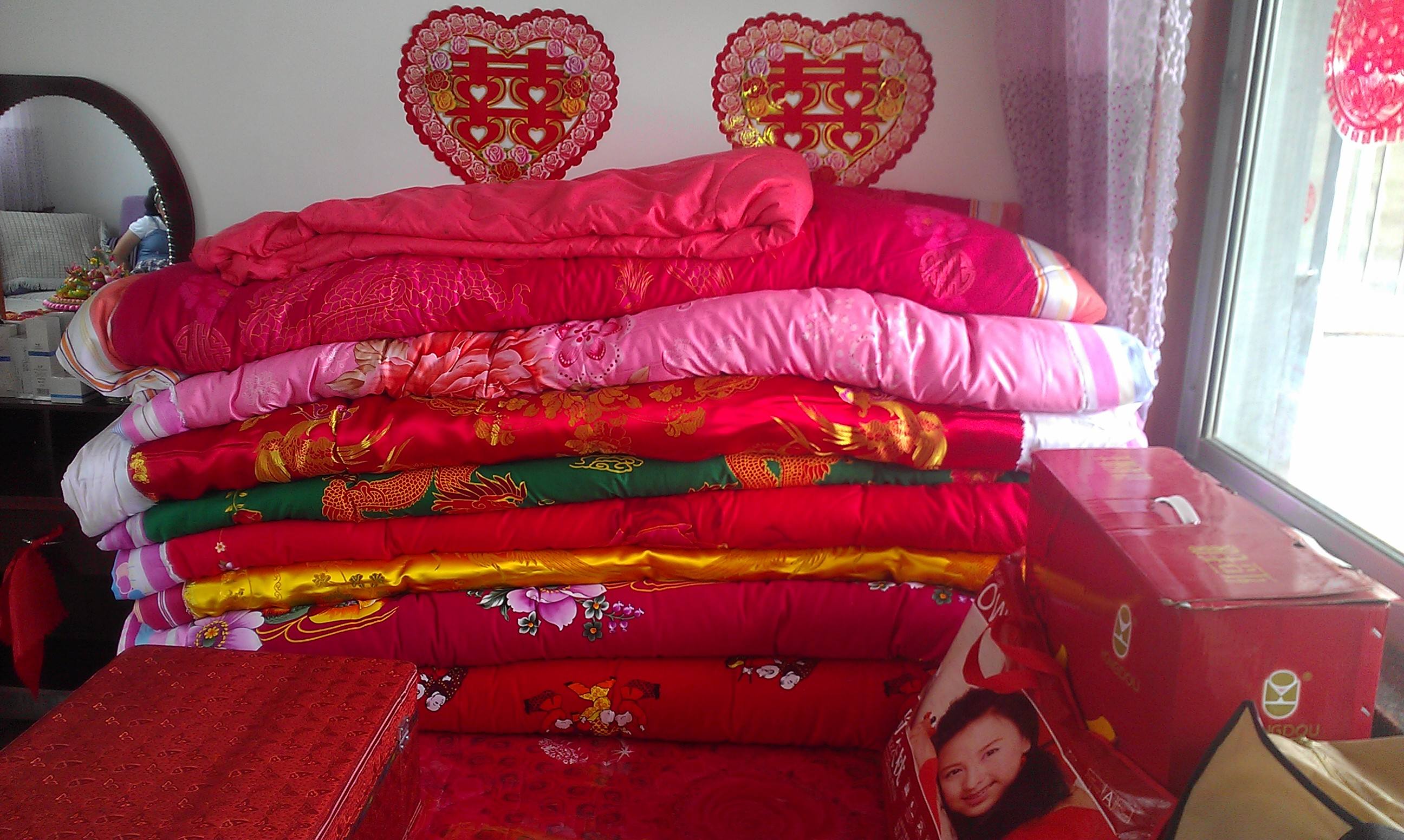 铺婚床有着很多的讲究,要找子孙满堂的老人来铺,寓意和和美美、子孙满堂,铺婚床一般都是用男方家里的东西铺床,铺床要算好时间,一边都是在结婚的前一天铺好,一般都是前一天的早上铺好,晚上还要找娃娃压床,铺床的时候讲究也是比较多,扫床、撒床、压床三个流程,撒床就是在床上放上各种寓意早生贵子的东西。莲子、花生、红枣、桂圆、栗子等等寓意是“早生子”、“莲生子”、“花生子”。