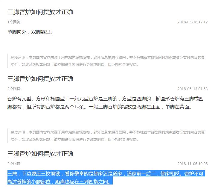 三脚香炉摆放讲究很多,有道家和佛家之分,同时要根据香炉的耳朵来正确摆放。
