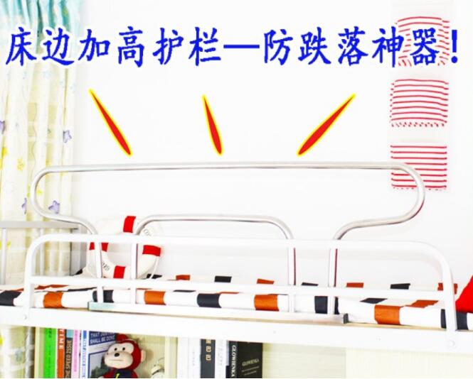 所以建议睡在上铺的兄弟姐妹不妨考虑下这几个办法。一是用一种叫做防摔神器的东西,在咱们万能的淘宝上就能找到很多,当然根本的思路还是加高了护栏的高度,这样就能从根源上解决问题。二是一个比较省钱的办法,就是可以借助蚊帐和窗幔等软性的材质,睡前可以把蚊帐等的边塞到褥子底下,这样就形成了一个包裹,人被裹在中间也是比较安全的。大家还可以采用把边上垫高等办法,总之安全方面的问题是必须要引起大家足够的重视的。