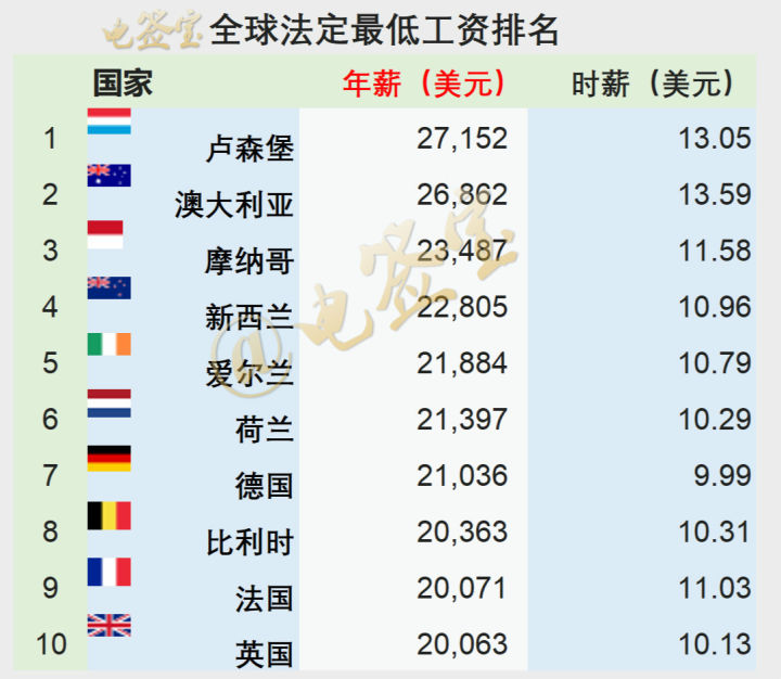 先看看卢森堡的工资情况,基本上普通人可以很随便的就拿到3000欧元,约合2万多人民币的月薪