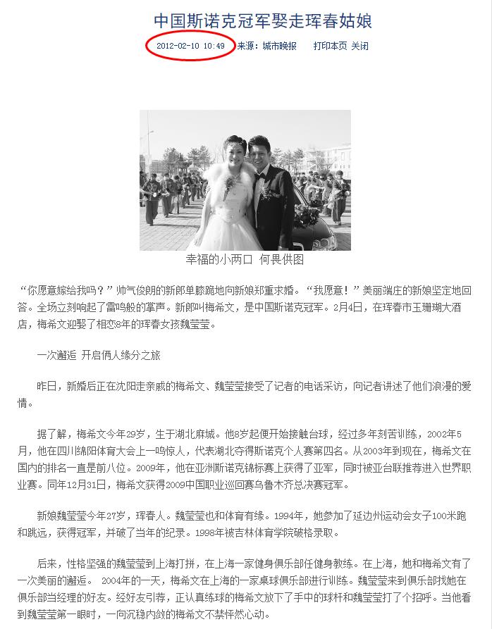 在2012年两个人大婚的时候,上了地方媒体的头条,当时的新闻截图如下: