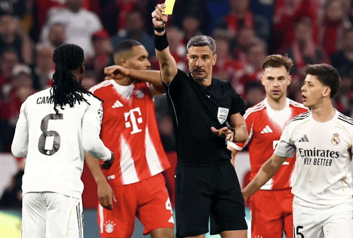 然而,这并非卡马文加本场比赛的第一张黄牌。此前,他已经因一次犯规吃到了一张黄牌。按照规则,此时他应被直接出示红牌罚下。但令人惊讶的是,裁判似乎忘记了卡马文加已经身背一张黄牌,并未立即将其罚下。直到拜仁球员提醒后,裁判才恍然大悟,补发了红牌,将卡马文加罚出场外。