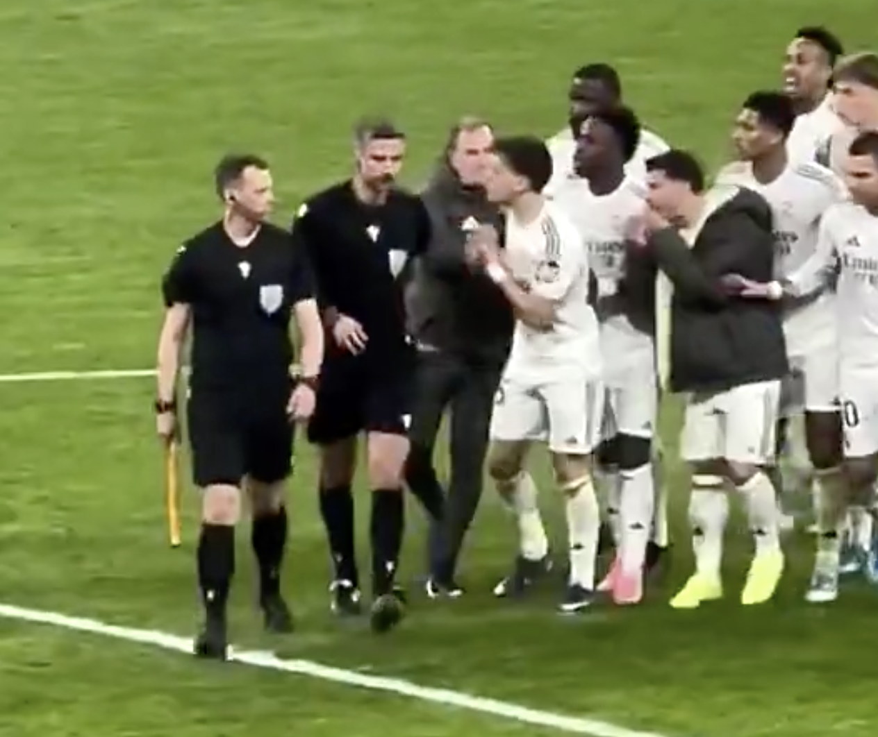 比赛结束后,皇马球员们感到无比愤怒和失望,多人围堵裁判表达不满。其中,维尼修斯、贝林厄姆以及居莱尔都当面向裁判提出了抗议。而在这一过程中,21岁的居莱尔由于情绪激动,也被裁判出示了红牌。