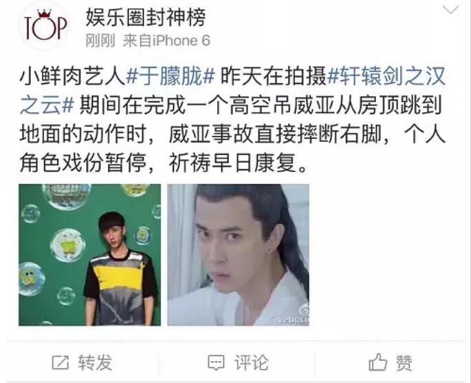演艺圈虽然说表面光鲜,但实际演员拍戏也是很辛苦的,比如说于朦胧在拍摄《轩辕剑之汉之云》的时候,就摔断了腿,导致大半年都不能工作。
