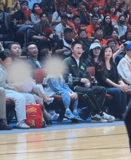 何猷君独自带娃现身篮球赛场 一儿一女专注观赛他情绪激动