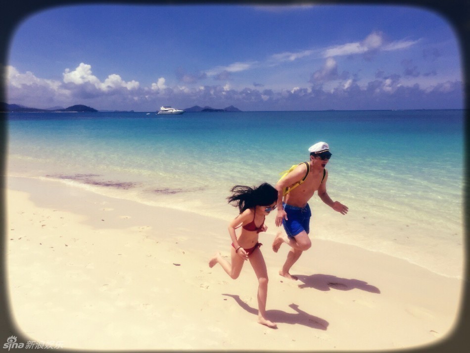 李亚鹏和李嫣在海边奔跑