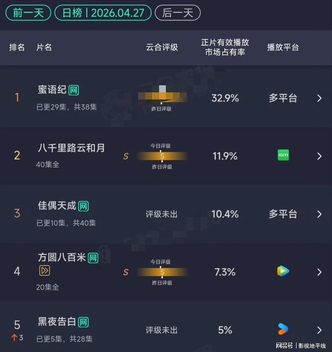 根据最新发布的云合数据统计结果,由任嘉伦领衔主演的古装剧《佳偶天成》以10.4%的市场占有率跻身榜单前三,距离登顶仅存在微弱差距。从当前数据走势来看,该剧仍具备冲击榜首的潜力,但需警惕后续新剧上线可能带来的竞争压力。