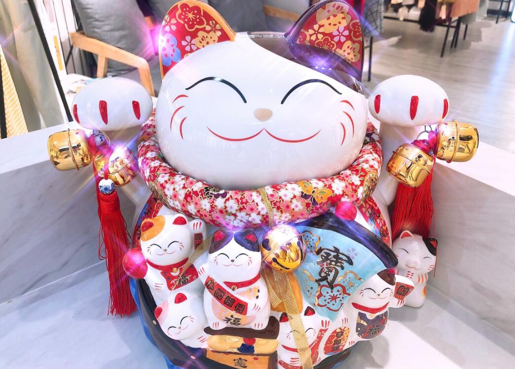 但其实招财猫和招福猫有着本质上的区别,从外形动作上来说,招福猫举起的是右爪,招财猫举起的是左爪。招福猫一般啥也不拿,就是招招手,招财猫另一只手一般都会怀抱金币。招财猫招财,招福猫招福,各司其职,各不相干,平安是富,来钱是财,所以大家不要买错了哦。